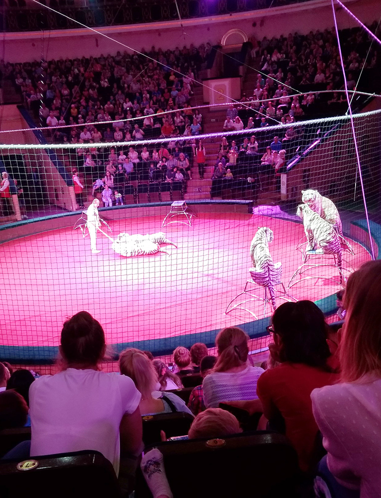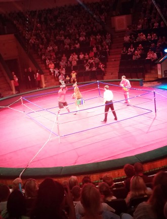 Сёлета запланавалі змяніць крыху наш маршрут. Мы вырашылі ўладкаваць сабе яркае і вясёлае свята. А дзе можна атрымаць гэта свята? Толькі ў цырку! Задумана – зроблена! І мы паехалі ў Мінск у цырк, дзе праходзіць новая праграма «Парад Але-Але-Але» артыстаў Маскоўскага цырка Ю. Нікуліна на Каляровым бульвары! Нашы падарожжы праходзяць заўсёды, нягледзячы на розныя неспадзеўкі надвор'я. Чатыры гадзіны язды і мы – ля мэты. Будынак Белдзяржцырка прыцягвае сваёй незвычайнай архітэктурай, а ўнутранае ўбранне – перадумовы да свята. Згашана святло – і ўяўленне пачалося…