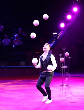 Паветраная гімнастка Эліза Хачатран заваражыла залу сваёй праграмай пад купалам на ліне ў пуантах. А жанглёр Зміцер Чарноў паказаў незвычайную канцэнтрацыю ўвагі пры жангляванні мячоў.