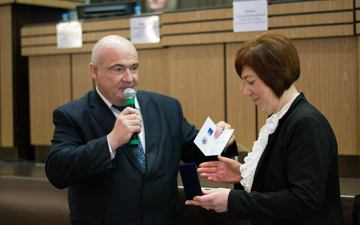 В работе совещания принимал участие председатель Гродненской областной организации профсоюза работников здравоохранения Голяк В.Р., который отметил значимость работы аптечных организаций Гродненского РУП «Фармация» в сфере лекарственного обеспечения населения области. Владислав Робертович отметил высокую активность работников предприятия, участвующих во всевозможных акциях и мероприятиях, проводимых областной организацией профсоюза работников здравоохранения, и в торжественной обстановке наградил нагрудным знаком «Прафсаюзны лiдар» Белорусского профсоюза работников здравоохранения председателя первичной профсоюзной организации Гродненского РУП Фармация» Нину Андреевну Серую.