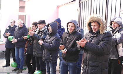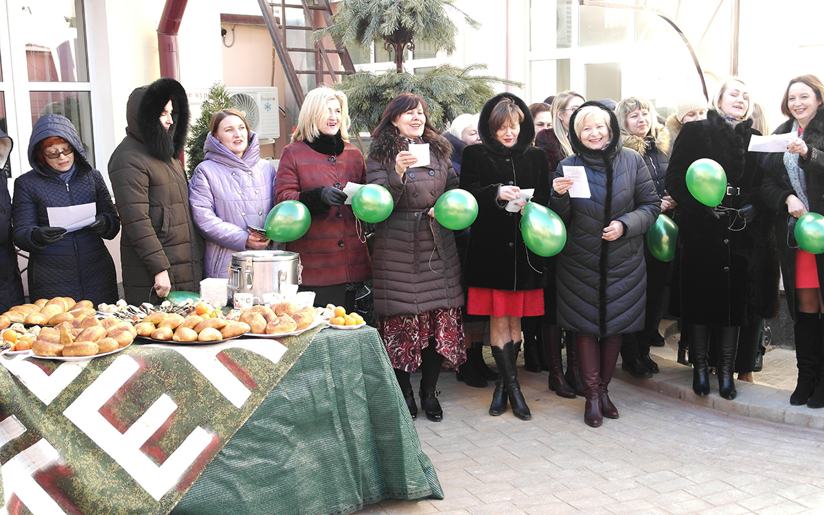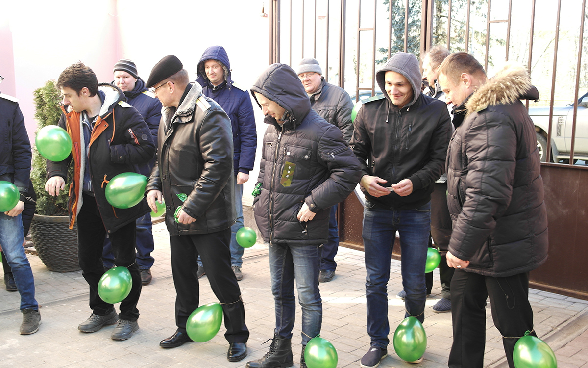 Солнце ярко светило, морозный воздух освежал и бодрил, яркие искренние улыбки согревали теплотой, а в уютном дворике Гродненского РУП «Фармация» разворачивалось нешуточное поздравление. В центре внимания – мужчины, и не удивительно, ведь накануне Дня защитника Отечества поздравить с наступающим праздником защитников предприятия – задача почетная. Но прекрасные работницы Гродненского РУП «Фармация»  справились с ней на «ура».