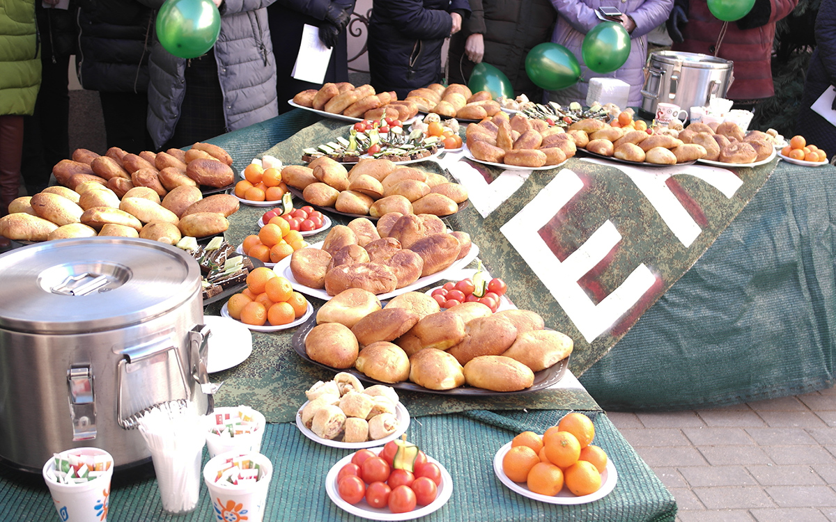 Участники смогли проверить свои знания по «военной подготовке», вспомнить правильный порядок воинских званий, провести экспресс-диагностику на скорость и четкость выполнения команд. Завершал поздравительную эстафету «воздушный бой», который подарил и зрителям и «бойцам» много положительных эмоций. Женская половина коллектива сопровождала представление веселыми, частушками, яркими улыбками, а также пожеланиями крепкого здоровья, бодрости духа, мирного неба, позитивного настроения, благополучия и успехов во всех начинаниях. А «полевая кухня» с горячими пирожками и чаем стала приятным сюрпризом для всех присутствующих.