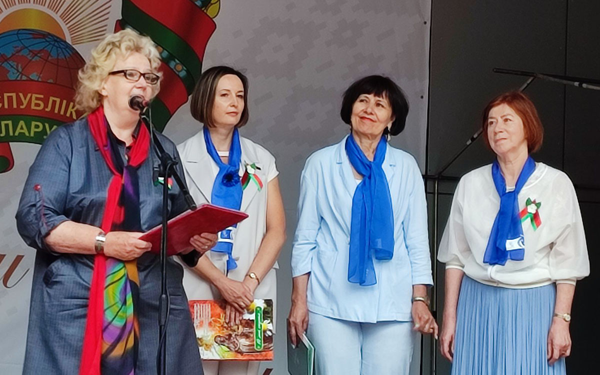 В День 80-летия освобождения Беларуси женщины Гродненской городской организации "Гродненчанка" ОО БСЖ дали старт проекту «Читаем стихи о войне во имя мира на земле», посвящённый 80-летию освобождения Республики Беларусь от немецко-фашистских захватчиков. Представители первички ОО БСЖ Гродненского РУП Фармация в лице заместителя генерального директора Гродненского РУП «Фармация» Зарецкой Татьяны Александровны, председателя первички ОО БСЖ Мацкевич Надежды Николаевны, провизора-рецептара аптеки №223 г.Гродно Серой Нины Андреевны, и ветерана аптечной службы Цыркуновой Татьяны Гавриловны, также приняли участие в проекте. Со сцены для зрителей они прочли стихи, написанные работниками Гродненского РУП «Фармация», участниками Великой Отечественной Войны.