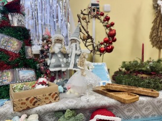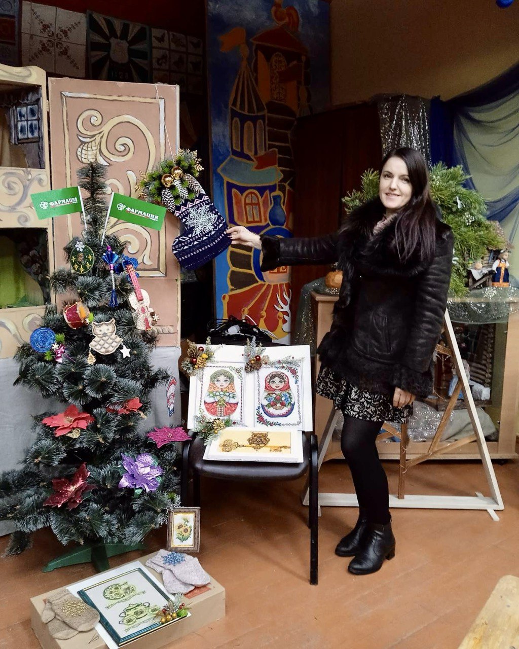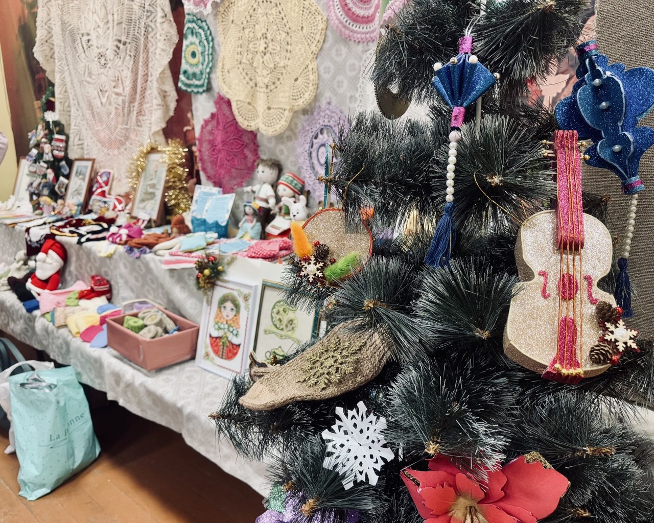 Выставка проходит в 4 раз. Здесь можно найти вязаные игрушки, носочки, вышитые картины и многое другое, сделанное своими руками. В этот раз она посвящена новогодним и рождественским праздникам и многие участницы продемонстрировали свое творчество через новогодний декор: елочки, елочные игрушки, венки и даже композиции.