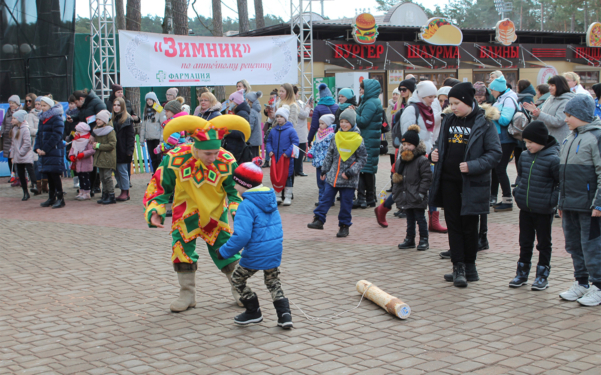 «Дорогие гости, проходите, а ребята подарок получите», – весело и задорно встречают участников праздника яркие скоморохи. На лицах и детей, и взрослых улыбки,- отличная погода, встреча в неформальной обстановке с коллегами, активный отдых на природе, – работники Гродненского РУП «Фармация» всегда ждут Зимник по аптечному рецепту с нетерпением.