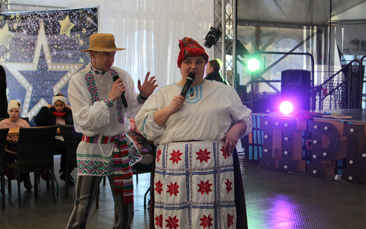 После таких насыщенных развлечений, участников ждало аппетитное угощение, – горячий чай с блинами в компании смешных артистов с народным колоритом, – Василя и Гандзи. На память можно было сделать готовые распечатанные фото на фоне корпоративной фотозоны Гродненского РУП «Фармация».