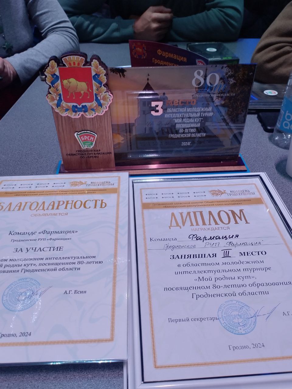 По итогам финальной таблицы результатов команда Гродненского РУП “Фармация” заняла достойное и почетное 3 место, уступив победителям всего  3 балла. Команда награждена дипломом третьей степени и памятными призами из рук Есина Андрея Геннадьевича, и получила колоссальное удовольствие от участия в данном турнире.