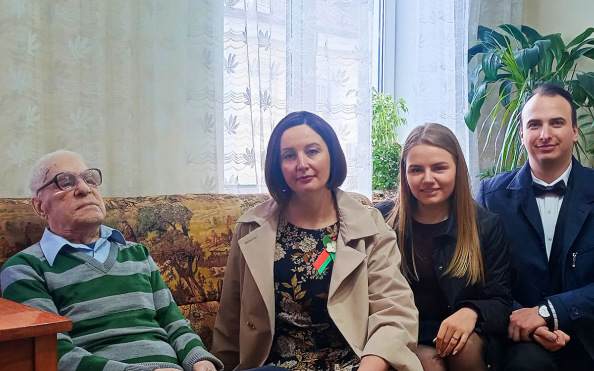 Далее специалисты предприятия посетили Виктора Степановича Акимова, которому совсем скоро исполнится 105 лет. Встретила активистов Гродненского РУП «Фармация» его дочка, Валентина Викторовна. История жизни Виктора Степановича полна водоворотов и огромного трудолюбия. Родился долгожитель в Симбирске. Его отец, оружейный мастер, погиб на фронте в Тюмени в Гражданскую войну.  Сам долгожитель стал военным музыкантом и играл на кларнете и саксофоне, служил в оркестре. Во время войны полк Виктора Степановича разбили немцы, выжили немногие, а сам он попал в плен, где испытал огромные лишения, но дождался Великой Победы. Несмотря на выпавшие на его судьбу трудности, Виктор Степанович сохранил позитив и бодрость духа, отзывчивость и доброту. Ветераны искренне благодарили за внимание, чуткое доброе отношение Гродненского РУП «Фармация».