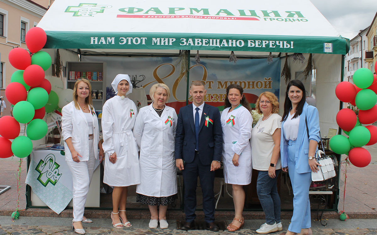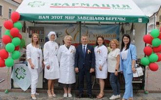 Делегация Гродненского РУП «Фармация» приняла участие в праздничных мероприятиях, посвященных 80-летию освобождения Беларуси от немецко-фашистских захватчиков. Руководство, профсоюзный комитет, специалисты государственной аптечной сети города Гродно, а также районных центров посетили праздничные митинги, возложили цветы к памятникам воинам-освободителям, благодаря которым мы можем мирно и счастливо жить. Также для гостей и жителей областного центра и городского поселка Берестовица были организованы выставки-презентации, где каждый желающий мог попробовать себя в роли провизора разных времен, познакомиться с историей и современностью государственной аптечной сети, попробовать вкусные и полезные витамины и биологически активные добавки к пище.