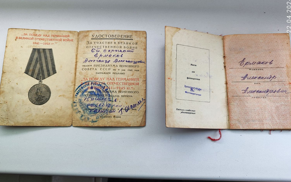 Евгения Петровна дошла до самого Берлина, где познакомилась со своим будущим мужем, Александром Александровичем Ермаковым. Он всю войну работал военным поваром. В время войны военный повар должен был справляться с тяжелым передвижным прицепом — полевой кухней с двумя котлами для нескольких блюд. В периоды затишья или на постое вокруг полевой кухни собирались и гражданские, часто приходили дети, которым повар не мог отказать. Кстати, так было и на территории противника: советские повара кормили мирное немецкое население.