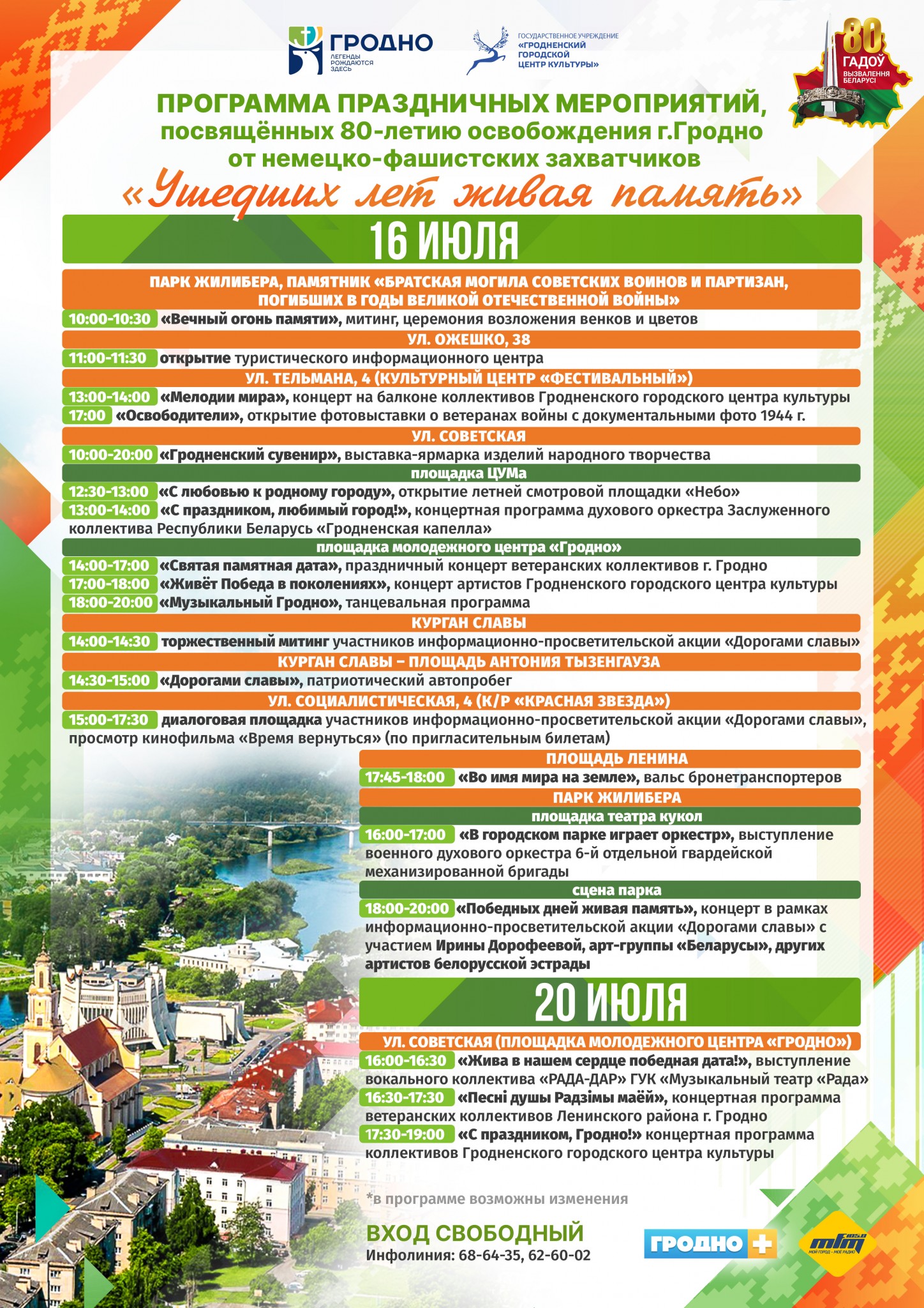 Программа праздничных мероприятий, посвященных 80 -летию освобождения города Гродно от немецко-фашистских захватчиков