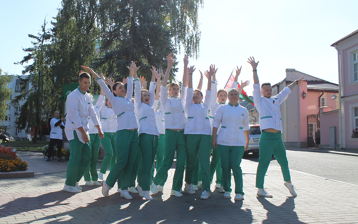 Сегодня площадка напротив главного офиса Гродненского РУП «Фармация» по адресу г.Гродно, ул.Ожешко, 11 собрала не только коллег и сотрудников предприятия, но и гостей и жителей города. Зрители могли увидеть и даже потанцевать зажигательный танец, прослушать песни в исполнении талантливых сотрудников государственной аптечной сети и просто зарядиться праздничной атмосферой.