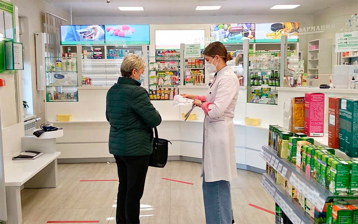 В аптеках Гродненского РУП «Фармация» в эти дни проходят информационные акции по профилактике распространения коронавирусной инфекции. Об эффективности вакцинации, правилах ношения масок и соблюдения респираторного этикета посетителям аптек рассказывают врачи-эпидемиологи Центров гигиены и эпидемиологии.