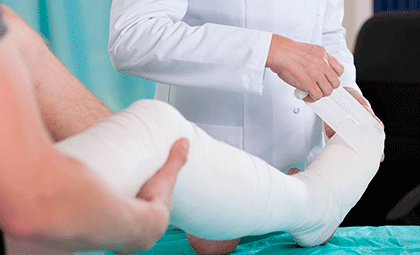 - При получении травмы необходимо вызвать бригаду скорой медицинской помощи или при возможности самостоятельно обратиться в ближайшее медицинское учреждение. Самостоятельно или с помощью окружающих создать условия неподвижности для поврежденной конечности при помощи подручных средств.