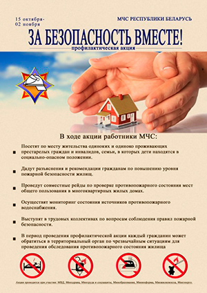 Республиканская пожарно-профилактическая акция Министерства по чрезвычайным ситуациям «За безопасность вместе» проводится в Беларуси c 15 октября по 2 ноября 2018 года.
