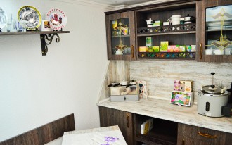 Во все времена в лечении широко использовались различные отвары и снадобья из лекарственного растительного сырья. Данному разделу посвящено небольшое, уютно обставленное колоритной мебелью в силе ретро с элементами ковки помещение – фитобар. Здесь представлены инфундирные аппараты и другие приспособления, используемые для приготовления целебных напитков из трав.