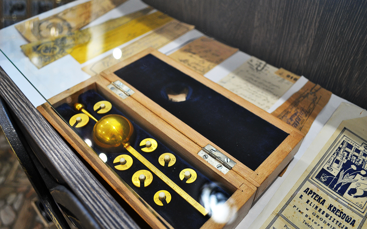 Представленные экспонаты относятся к XIX-XX векам, воочию можно увидеть 4-ую Российскую Фармакопею 1891 года издания, Государственную фармакопею VII издания – 1933 и 1942 гг.; Государственная фармакопея 8 издания – 1946, 1952 гг. и др., аптечная утварь, аптечные склянки, весы настольные, резак металлический для измельчения лекарственных растений, сфигмоманометр, микроскоп, спиртометр (позолоченный), сигнатуры различных аптек г. Гродно того времени (Аптека Станислава Швенгрубена, Клинковштейна, Шварца Саула, Новосветской аптеки В.Соколовского в Вильно, Аптека № 2 г. Гродно ул. Hinderburgstrasse, 7 времен ВОВ) и др.