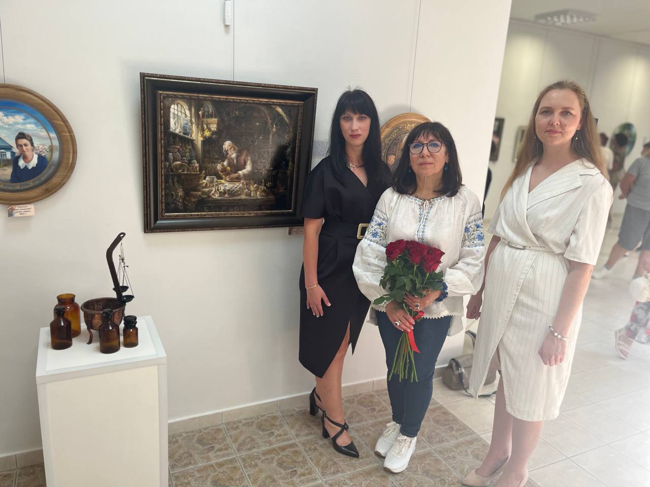 На выставке были представлены три картины, привезённые из кабинета истории Фармации аптеки №88 «Белфармация» города Минска. В присутствии самой Лидии Николаевны, наш коллега Инга Петровна Бартис, заведующая аптекой №139 г.Лида Гродненского РУП «Фармация», рассказала посетителям о глубоком историческом смысле этих произведений, их значении и уникальности.