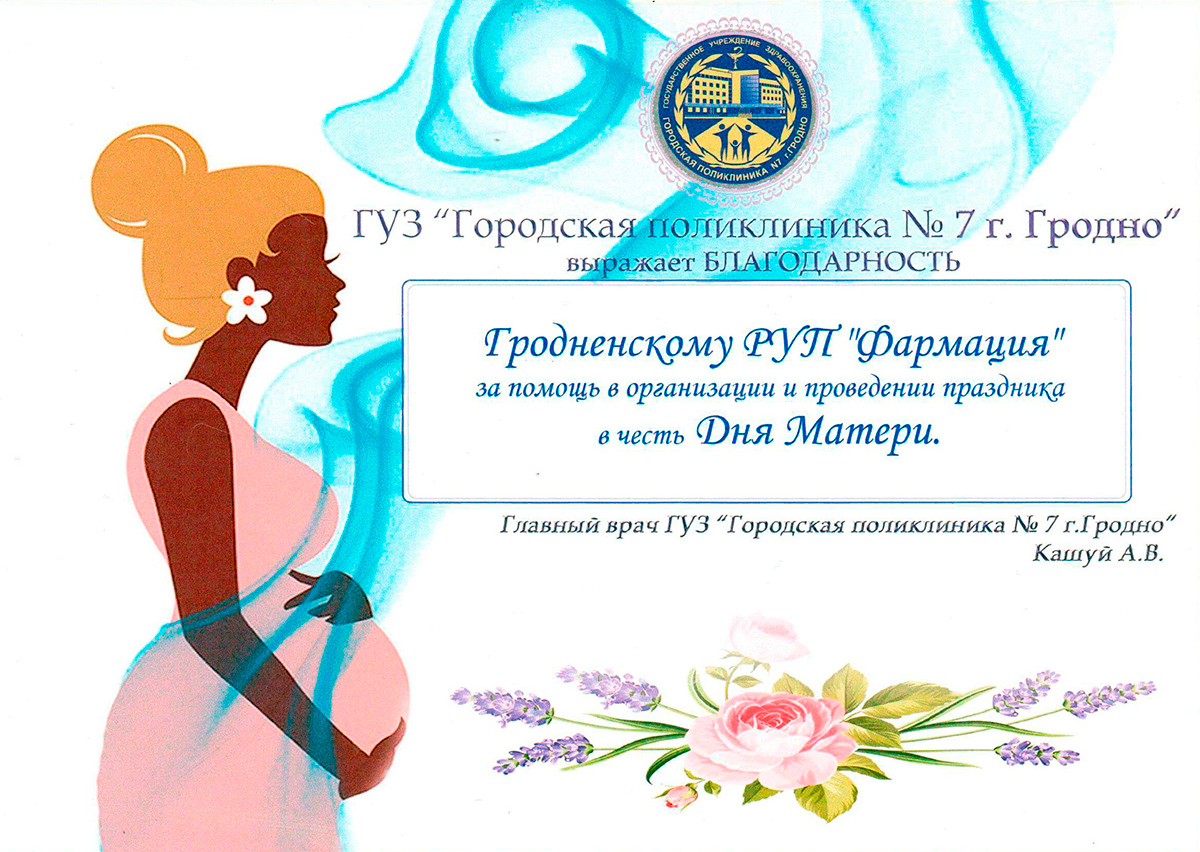 Благодарность от поликлиники №7 г.Гродно