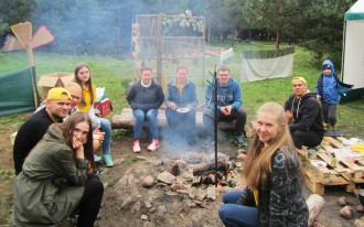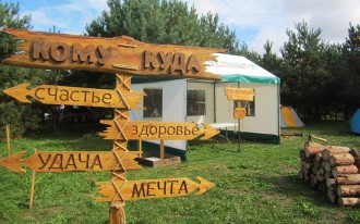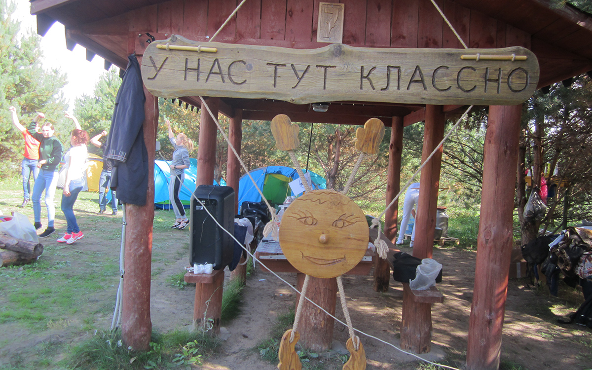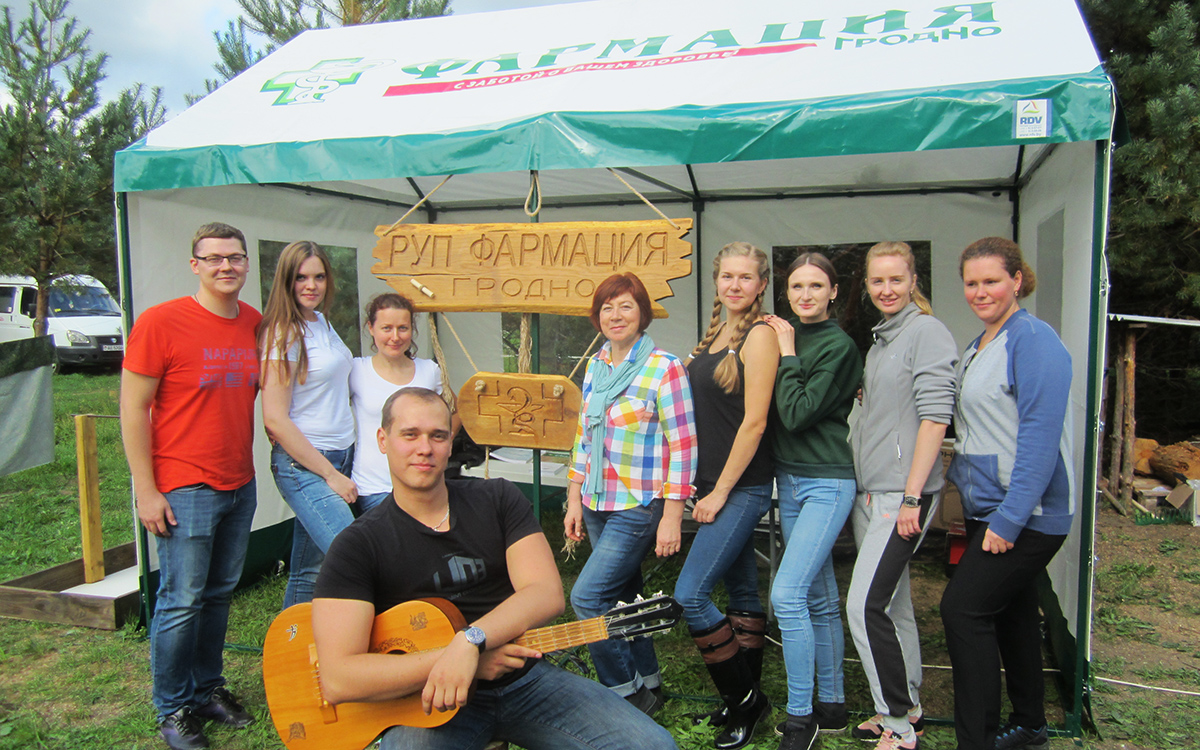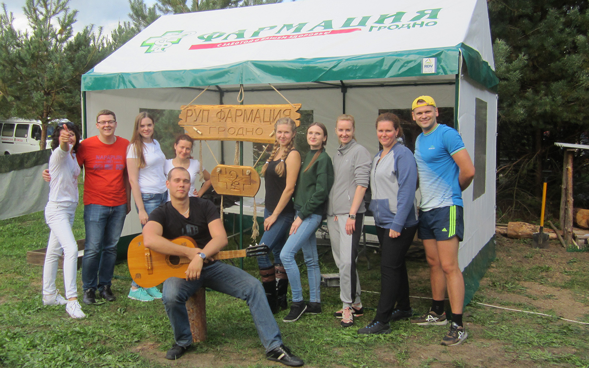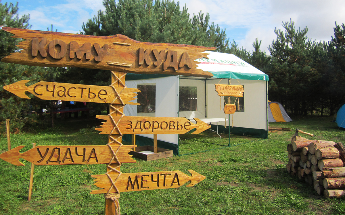 С утра команда «Полевая аптека» выехала на место дислокации. Разбили лагерь, развесили художественные таблички, сделанные нашим работником Владимиром Максимчиком, обустроили быт, украсили временное жилье, развели костер, словом, освоили выделенную территорию. Полевая аптека получилась красивой, стильной и подтверждающей свое название.