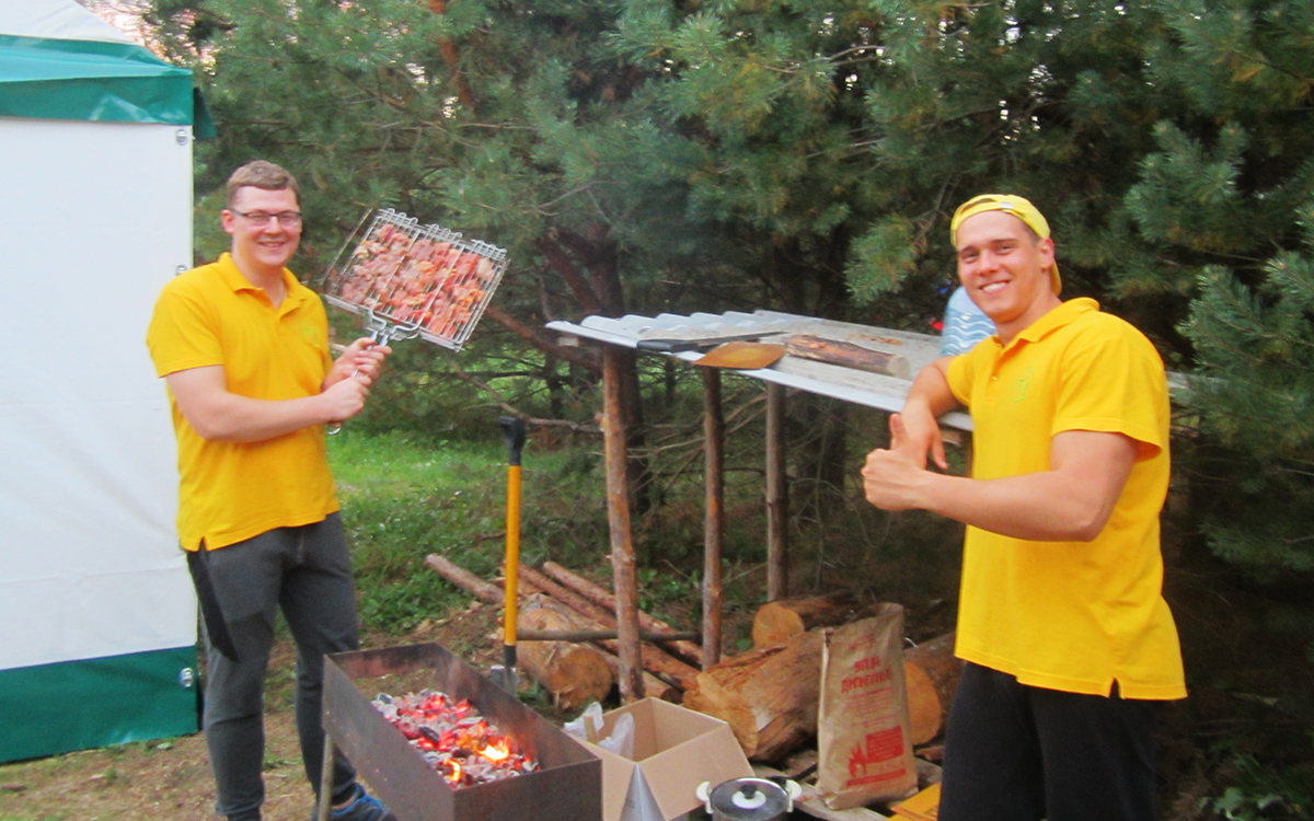 Не забывали мы и про еду. Утром по приезду кофе-чай, бутерброды. На обед каша гречневая с тушенкой, на ужин шашлыки, на следующее утро уха, приготовленная Александром Осовиком, колбаски аппетитные, каша перловая, дыня, арбуз и т.д.