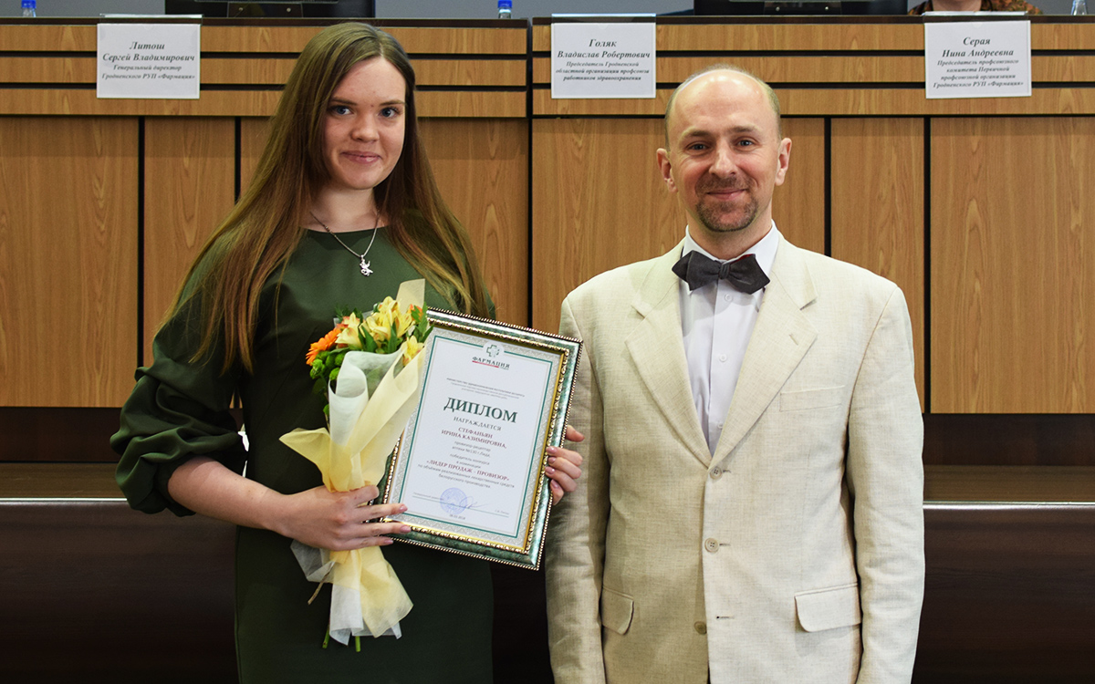 - «Лидер продаж – фармацевт» по объемам реализованных лекарственных средств белорусского производства Кадевич Е.Ф., фармацевт-рецептар аптеки № 150 г. Гродно.