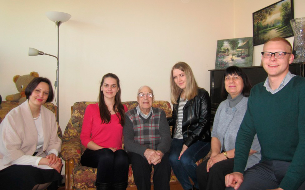 Виктор Степанович Акимов переехал в наш город из Могилева, когда умерла жена, и дочери забрали его к себе. Военный музыкант, играл на кларнете, саксофоне. Во время войны попал в плен и пережил столько всего, что в мирную жизнь долго еще по ночам кричал от страшных военных сновидений. С восхищением слушали рассказ 99-летнего дедушки, интеллигентного, доброжелательного, рассказывающего о том, что они видят только в кино и читают в гаджетах. В 2018 году у Виктора Степановича 100-летний юбилей, и мы ему пообещали приехать и поздравить с красивой датой, пожелав здоровья, и взяв с него обещание дожить до такой круглой вековой даты!