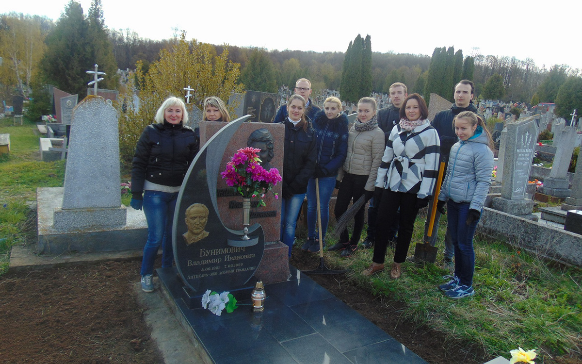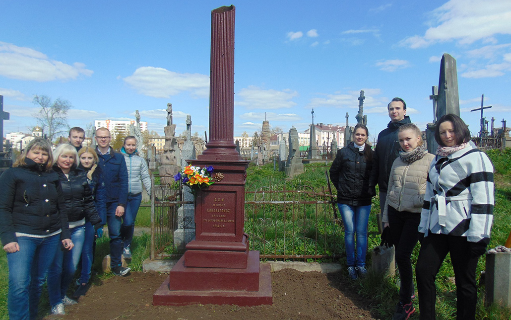 В тот же день провели уборку у могилы аптекаря Михаила Кондратовича. В начале 19 века Кондратович значился владельцем Фарной аптеки, теперешняя аптека-музей. Дата захоронения – 1840 год. В прошлом году общими силами сотрудников предприятия удалось восстановить былой вид памятника.