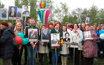 Не оставила равнодушным ни одного человека патриотическая акция «И в памяти навеки имена…», аналогичная известному «Бессмертному полку». Люди несли в праздничной колонне портреты своих родных и близких, среди них и работники Гродненского РУП «Фармация» с портретами своих родных и ветеранов нашего предприятия – участников Великой Отечественной войны.