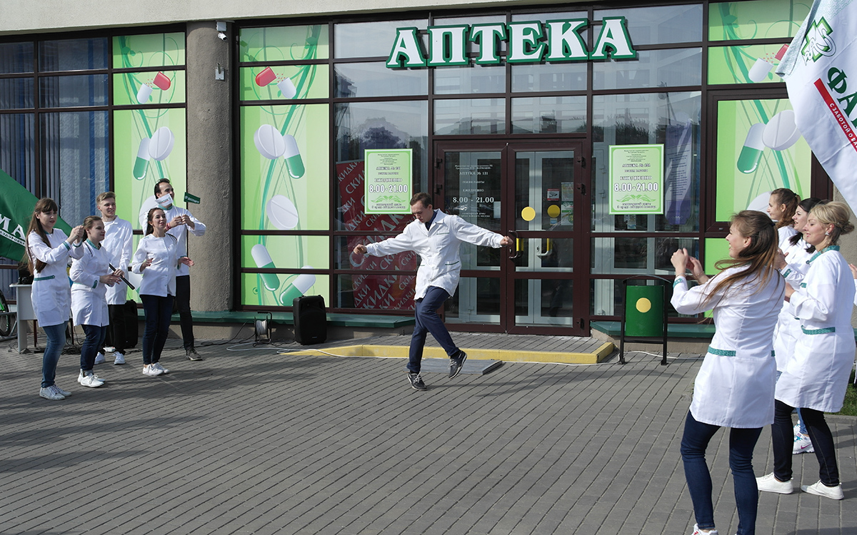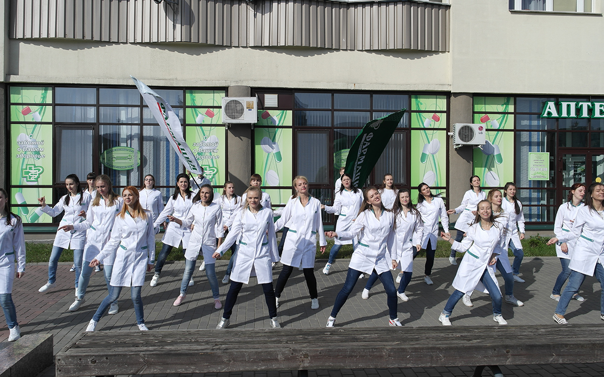 25 сентября 2017 года во Всемирный День фармацевта работники Гродненского РУП «Фармация» организовали невероятно зрелищный и стильный флешмоб около входа в аптеку № 131 г. Гродно.
