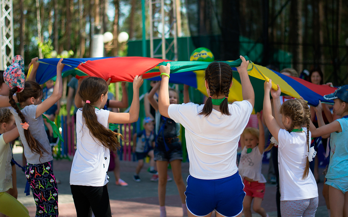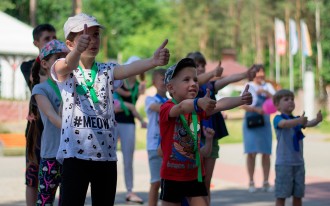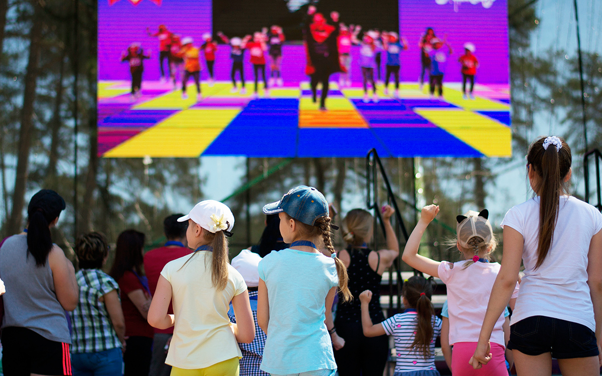 Очень всем понравился танцевальный видео-флешмоб «Чуча-чача», где каждый участник должен был делать движения в соответствии с видеороликом на мониторе, меняя в слове «Чуча» букву «у» на букву «а». Командным духом был пронизан конкурс перекидывания мяча на надувном покрывале от команды мальчиков команде девочек и наоборот.