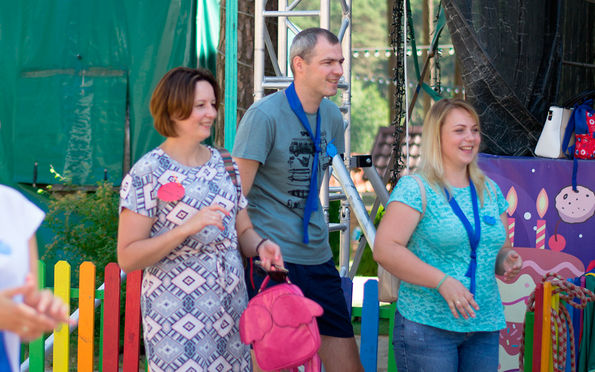 База отдыха «Привал» встретила приветливо и радушно, предоставив большую сцену с площадкой, микрофонами и музыкой. Открыли праздник ведущие, познакомили с семьями-участниками, построили в команды, выбрали членов жюри. Дальнейшую организацию праздника передали в руки менеджеров «Привала» под руководством очаровательной Юлии.