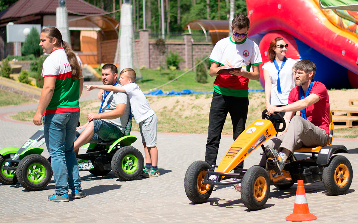 Пробовали себя семьи в езде на веломобилях на скорость, прыгали через скакалку на количество прыжков. Взрослые соревновались в тире в стрельбе по мишеням из ружья, в то время как дети соревновались в стрельбе дротиками по надувным шарикам. Нелегко было участникам соревнований забить шайбу на хоккейной площадке в определённые лунки. Развеселили всех соревнования по бегу в ярких жёлто-красных тяжелых сапогах, так называемые гига-ботах. Несмотря на то, что сапоги действительно были тяжёлые, много детей попробовали свои силы в этом конкурсе, принеся дополнительное очко своей команде.