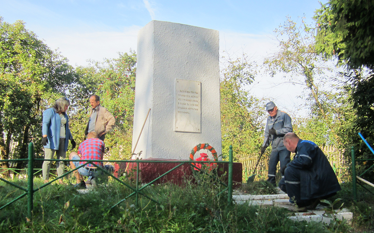 Посетив впервые захоронение в 2015 году, мы прониклись уважением к подвигу наших солдат. В рамках профсоюзного проекта «Дорогой вереска» привели в порядок обелиск и прилегающую территорию: положили плитку вокруг памятника, покрасили ограду. Так и продолжаем ухаживать за обелиском, посещая его несколько раз в году.