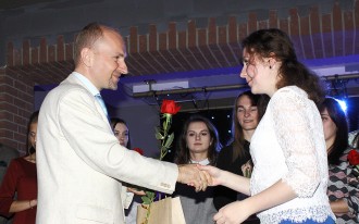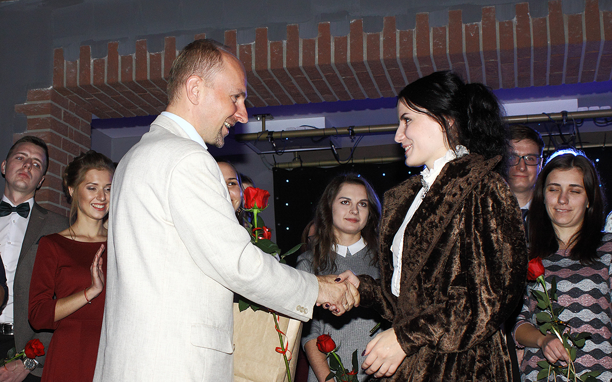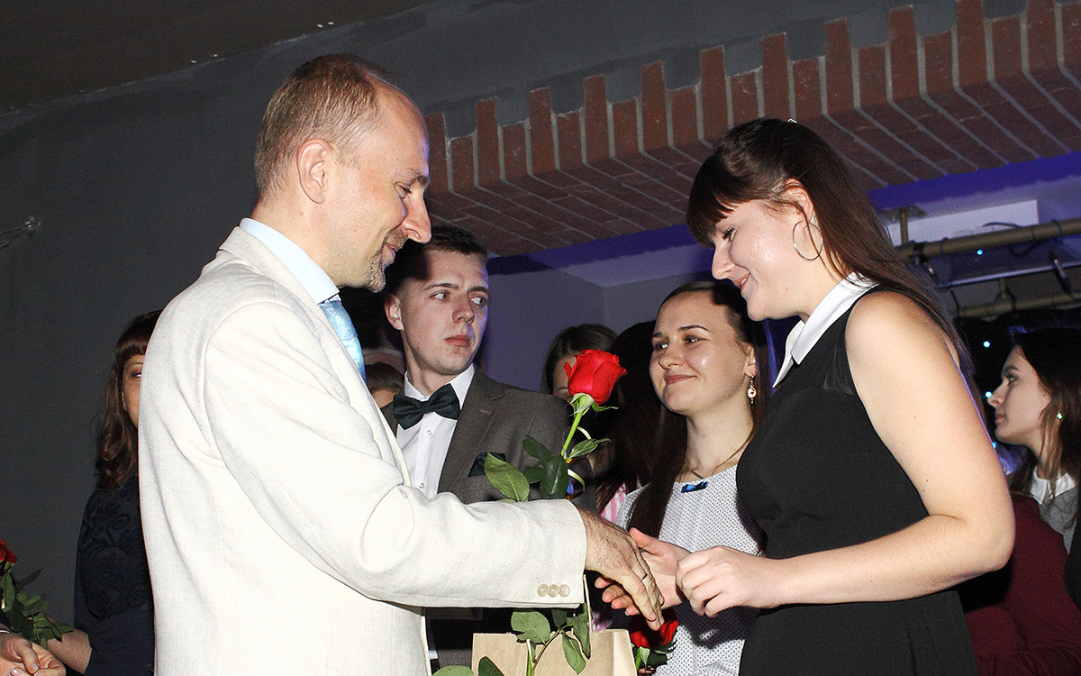 Ведущие Мария Житко и Николай Петрушкевич приглашали на сцену вчерашних студентов.