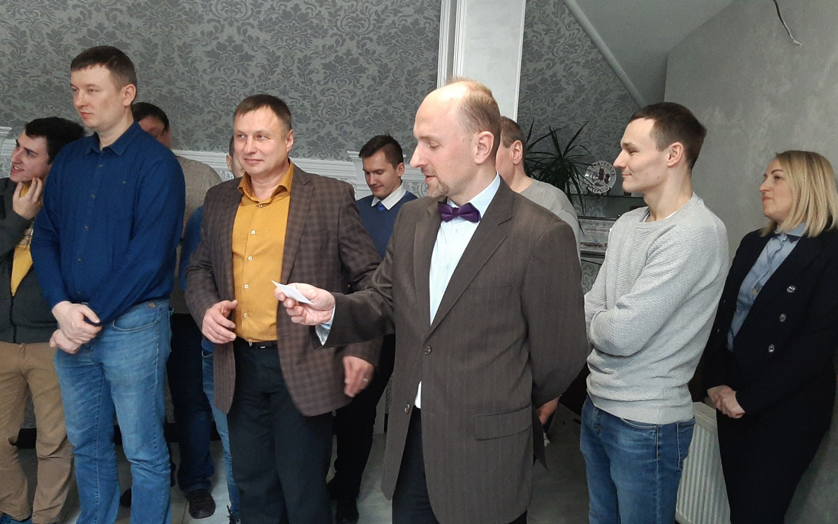 На вопрос о впечатлениях Валерий отмечает, что сотрудницы предприятия приготовили насыщенную и интересную программу. Так, в импровизированном шоу «Интуиция» участникам пришлось узнавать коллег среди веселых строчек четверостиший. Задача оказалась под силу, позволила работникам лучше узнать друг друга и настроила на позитивную волну. Колоритный гороскоп порадовал мужчин интересными деталями и чертами каждого знака зодиака.