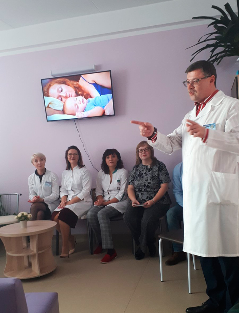 В проведении мероприятия активное участие приняли специалисты аптеки №250 г.Гродно. Заведующая аптекой, Борисеевич Екатерина Станиславовна, рассказала слушателям о работе карт «Медицинского обслуживания», а также предоставляемых скидках в аптеках Гродненского РУП «Фармация». Кроме этого, медицинские специалисты поликлиники познакомили будущих мамам с подготовкой к появлению малыша, информацией о компрессионных изделиях, а также о важности умения оказать первую помощь в сложных ситуациях. Кроме этого, участницы смогли не только посмотреть продукцию для мам и малышей в ходе небольшой выставки-презентации, но и продегустировать фиточаи. Праздник получился очень душевным и зарядил участников положительными эмоциями и позитивом.