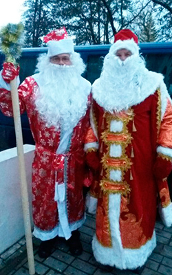 Пятый год наше предприятие принимает участие в новогоднем шествии. Резиденция Деда Мороза и Снегурочки – аптека №36, где наполняется сумка сладкими подарками. В этом году наши новогодние персонажи сменили свой гардероб и приобрели более респектабельные наряды. Дружный дуэт - Дед Мороз (Борис Пузыня) и Снегурочка (Марина Чиркова) – представители аптечного склада и аппарата управления, принимают участие не в первый раз.