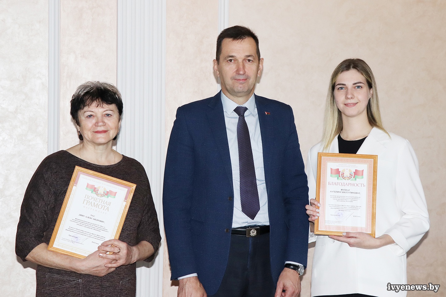 Председатель райисполкома Игорь Генец вручил Почетную грамоту райисполкома фармацевту-рецептору аптеки №192 ЦРА Ивьевского района Дине Александровне Усс за многолетний добросовестный труд в сфере охраны здоровья и в связи с Днем работников фармацевтической и микробиологической промышленности (прим. - отмечался 15 октября), сообщает газета "Iўеўскi край".