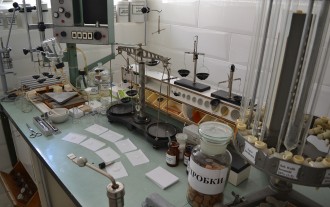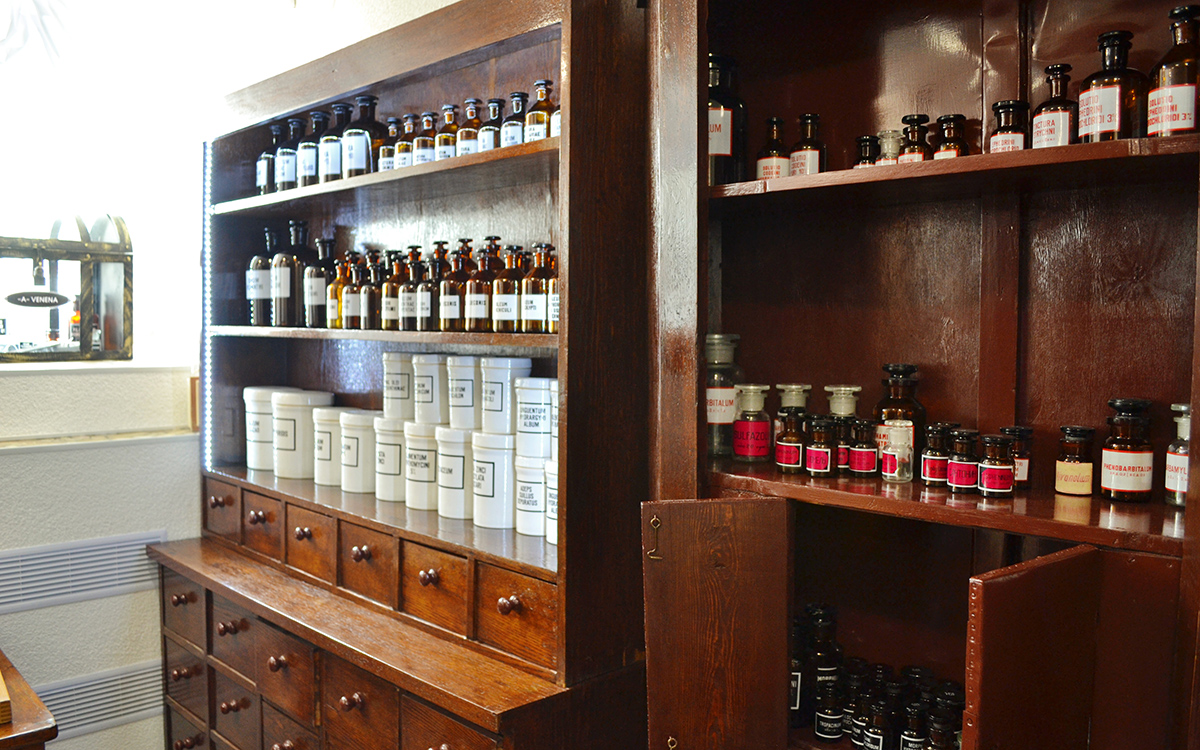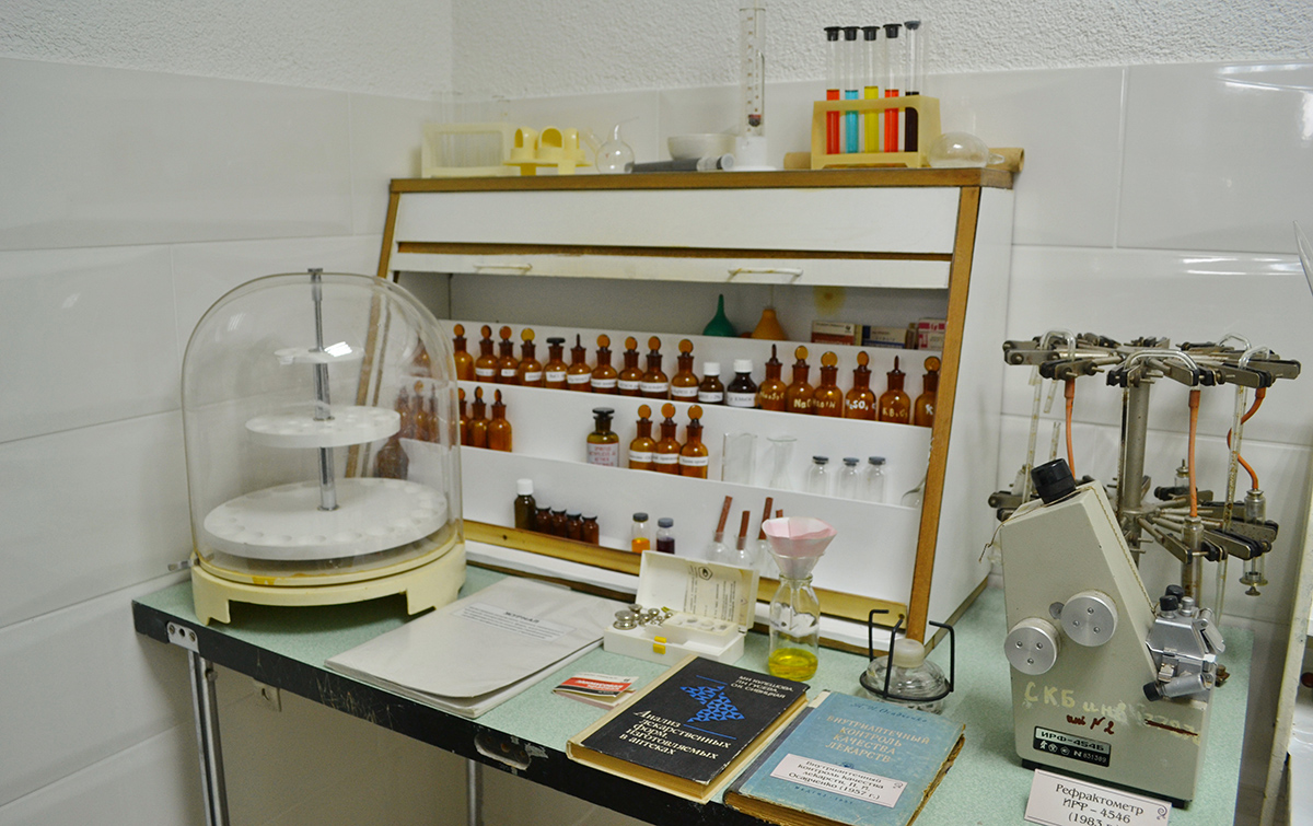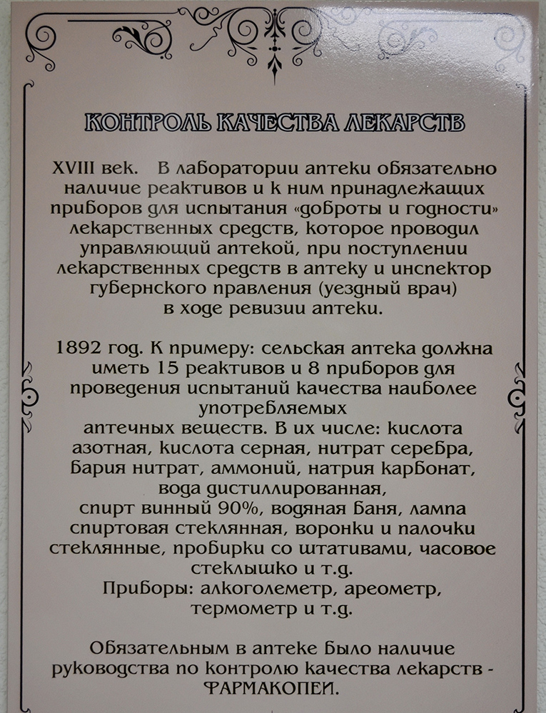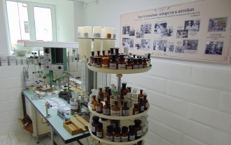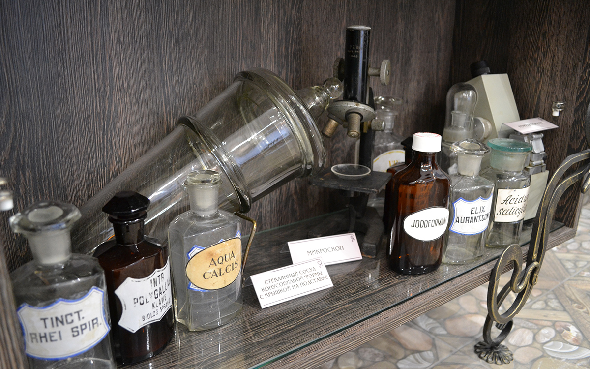 В кабинете истории торговый зал оформлен в соответствии с описанием аптек 19 века.