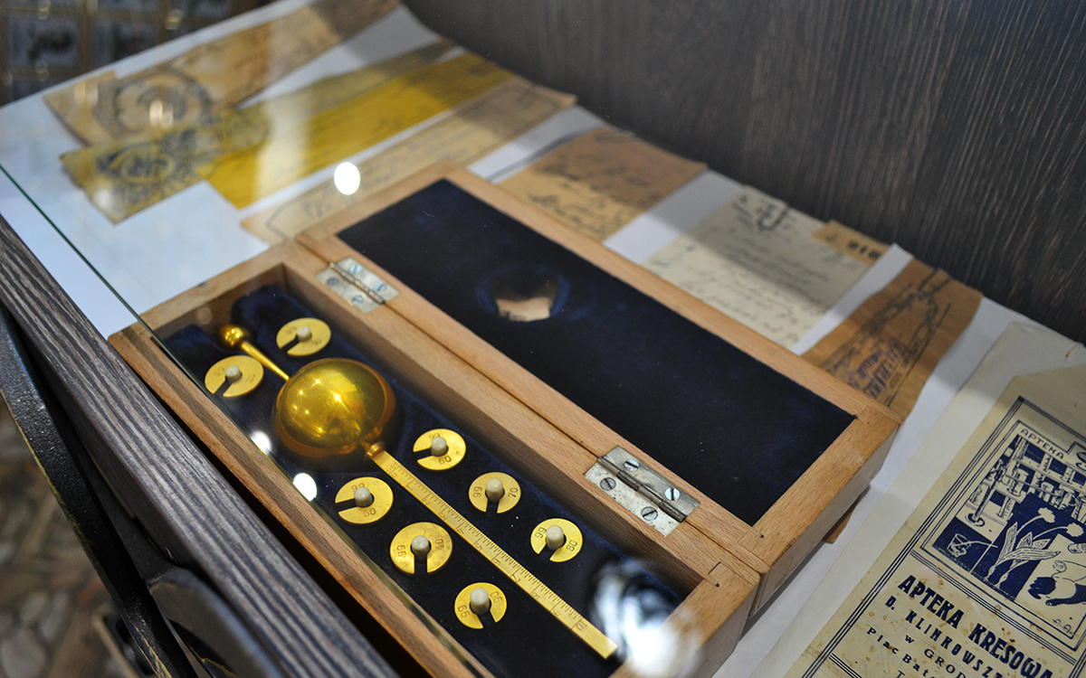 Представленные экспонаты относятся к XIX-XX векам: 4-ая Российская Фармакопея 1891 года издания, Государственная фармакопея VII издания – 1933 и 1942 гг.; Государственная фармакопея 8 издания – 1946, 1952 гг. и др., аптечная утварь, аптечные склянки, весы настольные, резак металлический для измельчения лекарственных растений, сфигмоманометр, микроскоп, спиртометр (позолоченный), сигнатуры различных аптек г. Гродно того времени (Аптека Станислава Швенгрубена, Клинковштейна, Шварца Саула, Новосветской аптеки В. Соколовского в Вильно, Аптека № 2 г. Гродно ул. Hinderburgstrasse,7 времен ВОВ) и др.