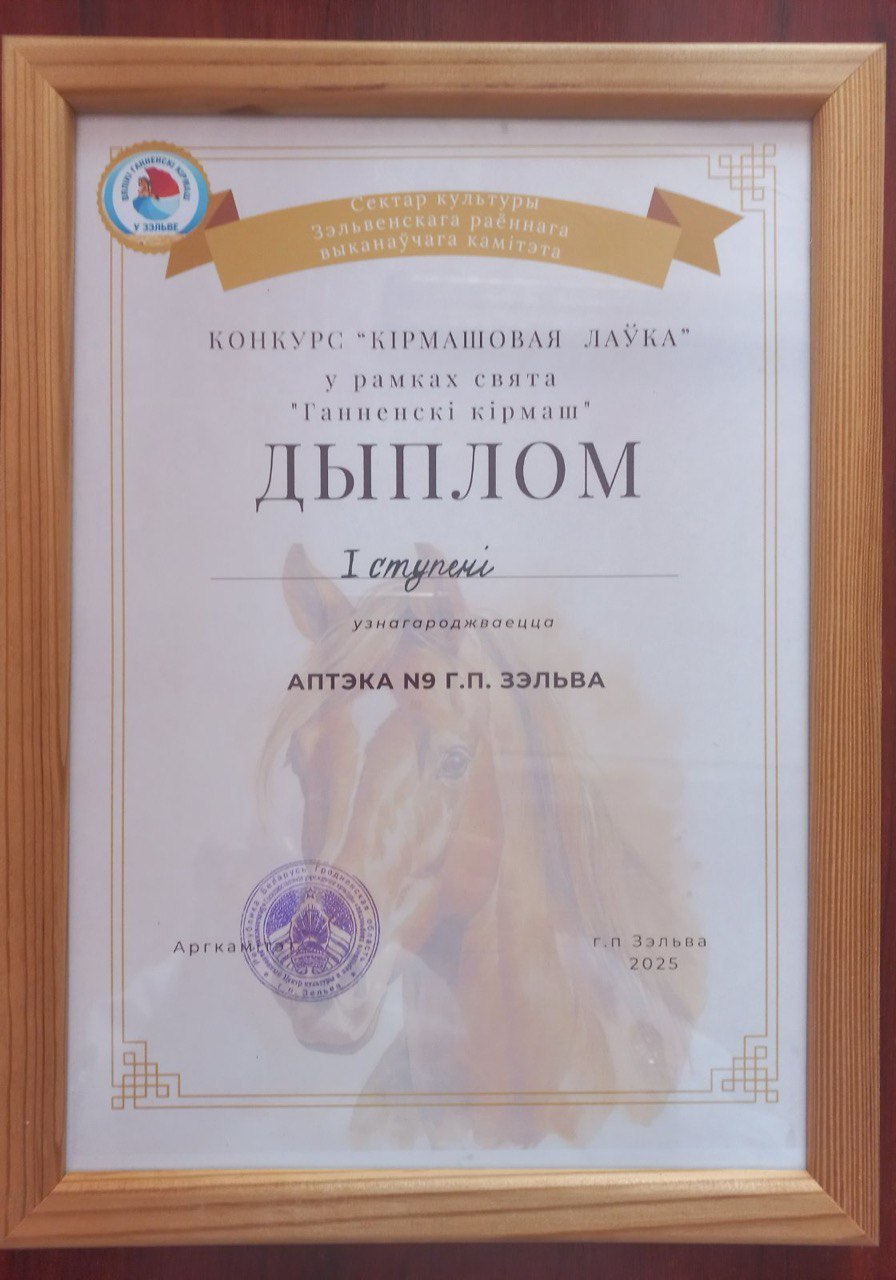 По итогам конкурса аптека №9 г.п.Зельва была признана победителем и награждена дипломом первой степени.