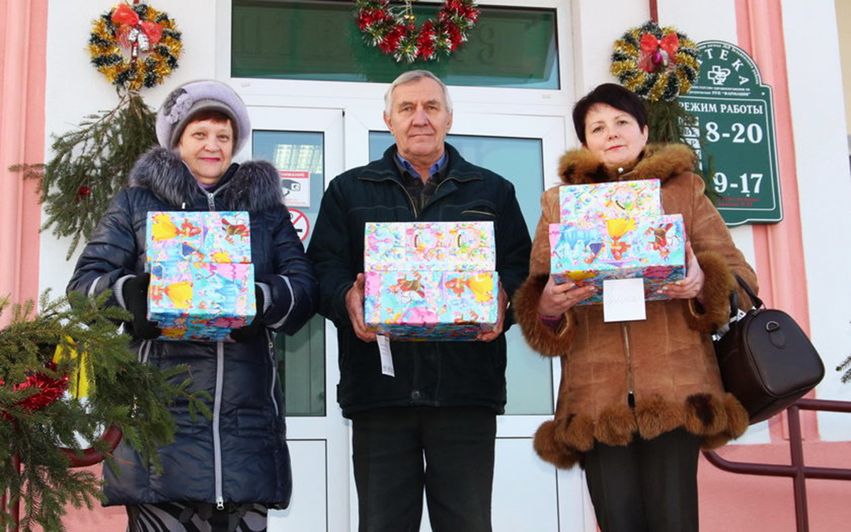 Не остались в стороне и работники всех аптек района. На собранные деньги были приобретены в аптеке детские средства личной гигиены (кремы, шампуни, мыло, зубные пасты и щётки, влажные салфетки), а также детское питание (пюре, нектары, соки). На этот раз совместными усилиями удалось собрать подарков на общую сумму 170 рублей.