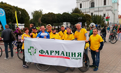 Команду Гродненского РУП «Фармация» представляли 8 участников, любителей здорового образа жизни и движения. Поддержать велосипедистов пришли родные и близкие наших работников, а также заместитель генерального директора Гродненского РУП «Фармация» Зарецкая Татьяна Александровна.