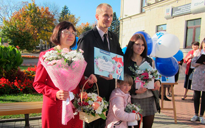 Семья выехала из Брестской области рано утром 12 октября (дочь гостила у мамы), четыре часа были в дороге. Место встречи – Гродно, Дом профсоюзов. На беседу пригласил председатель Гродненской областной организации Белорусского профсоюза работников здравоохранения Владислав Голяк. Ему, бывшему главному врачу Сморгонской больницы, понятно, что значит 32 года трудового стажа в должности заведующей ФАПом, какой это труд. Председатель первичной профсоюзной организации Нина Серая поздравила семью, вручила цветы и пожелала передавать из поколения в поколение главные семейные ценности – любовь, верность, доброту, мудрость.