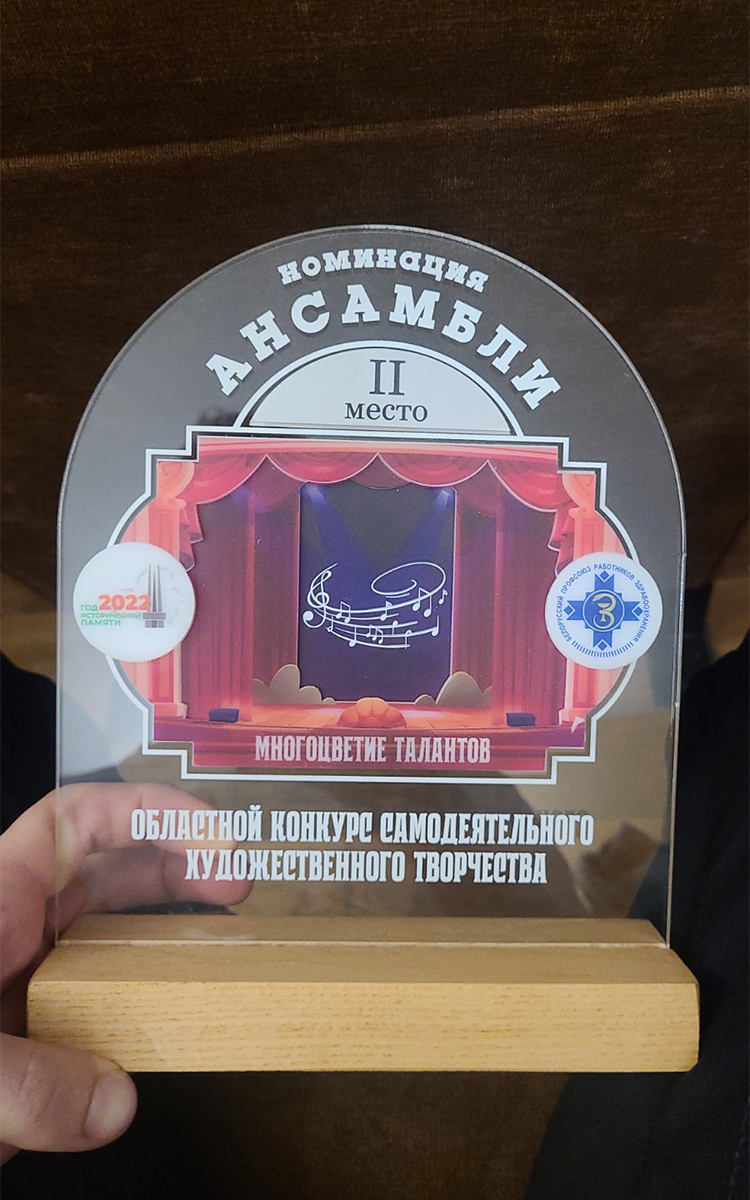 13 октября состоялся областной этап конкурса творчества «Многоцветие талантов», организованный Главным управлением здравоохранения Гродненского областного исполнительного комитета и Гродненской областной организации Белорусского профессионального союза работников здравоохранения. В мероприятии приняли участие специалисты Гродненского РУП «Фармация»- Дмитрий Побережный, заместитель заведующего аптекой №49 г.Гродно и Евгений Хозей, водитель автомобиля транспортного отдела аптечного склада. Ребята выступали в двух номинациях - «Ансабль» и «Вокал» и показали отличный результат и отличное выступление. По результатам конкурса наши участники заняли второе призовое место в номинации «Ансабль», а Евгений Хозей был отмечен по мнению жюри. Мы искренне поздравляем Евгения и Дмитрия и желаем дальнейших побед и новых проектов!