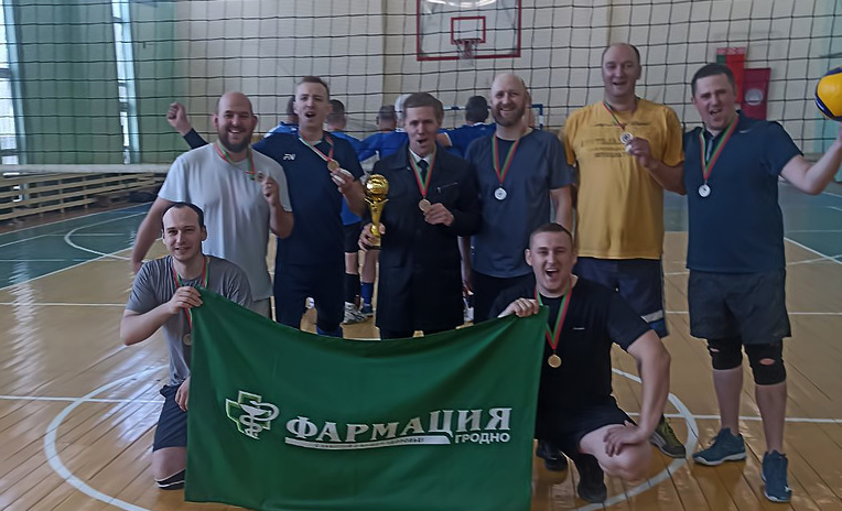 Мужская сборная команда Гродненского РУП «Фармация» по волейболу сегодня заняла второе место в соревнованиях по волейболу среди работников здравоохранения в рамках областной спартакиады. Поддержать ребят во время игры пришел генеральный директор Гродненского РУП «Фармация» Боровик Виталий Григорьевич. Такого замечательного результата волейболистам удалось добиться благодаря усиленным тренировкам, упорству и большой воле к победе! Мы желаем ребятам дальнейших ярких побед!
