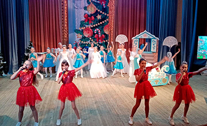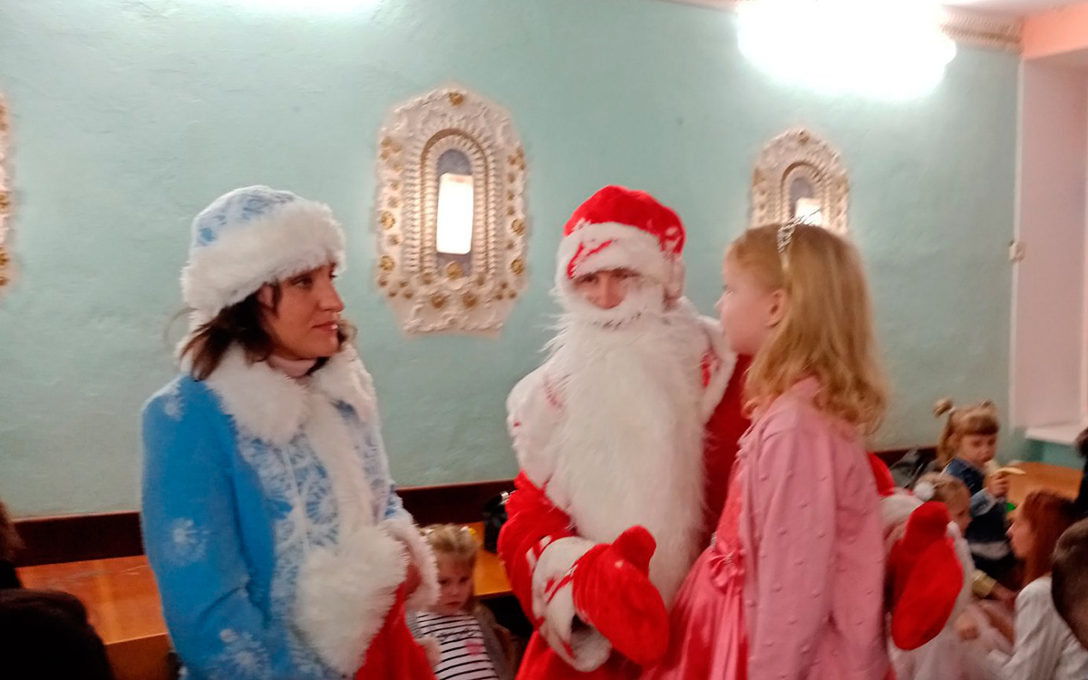 Было  показано задорное новогоднее представление с разными  сказочными героями . Сказочные герои увлекли в волшебный мир сказки не только детей, но и взрослых. С появлением Деда мороза начался настоящий праздник с песнями и танцами, хороводами вокруг ёлки. После представления дети читали стихи Деду Морозу и Снегурочке, фотографировались с персонажами, получали сладости.