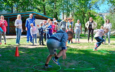 На базе подшефного сада № 65 г. Гродно в честь Международного дня защиты детей 3-го июня традиционно собрались семьи работников Гродненского РУП «Фармация» с детьми, чтобы посоревноваться, пообщаться и просто весело отдохнуть. 15 семей общей численностью в 43 человека пришли на семейный праздник.