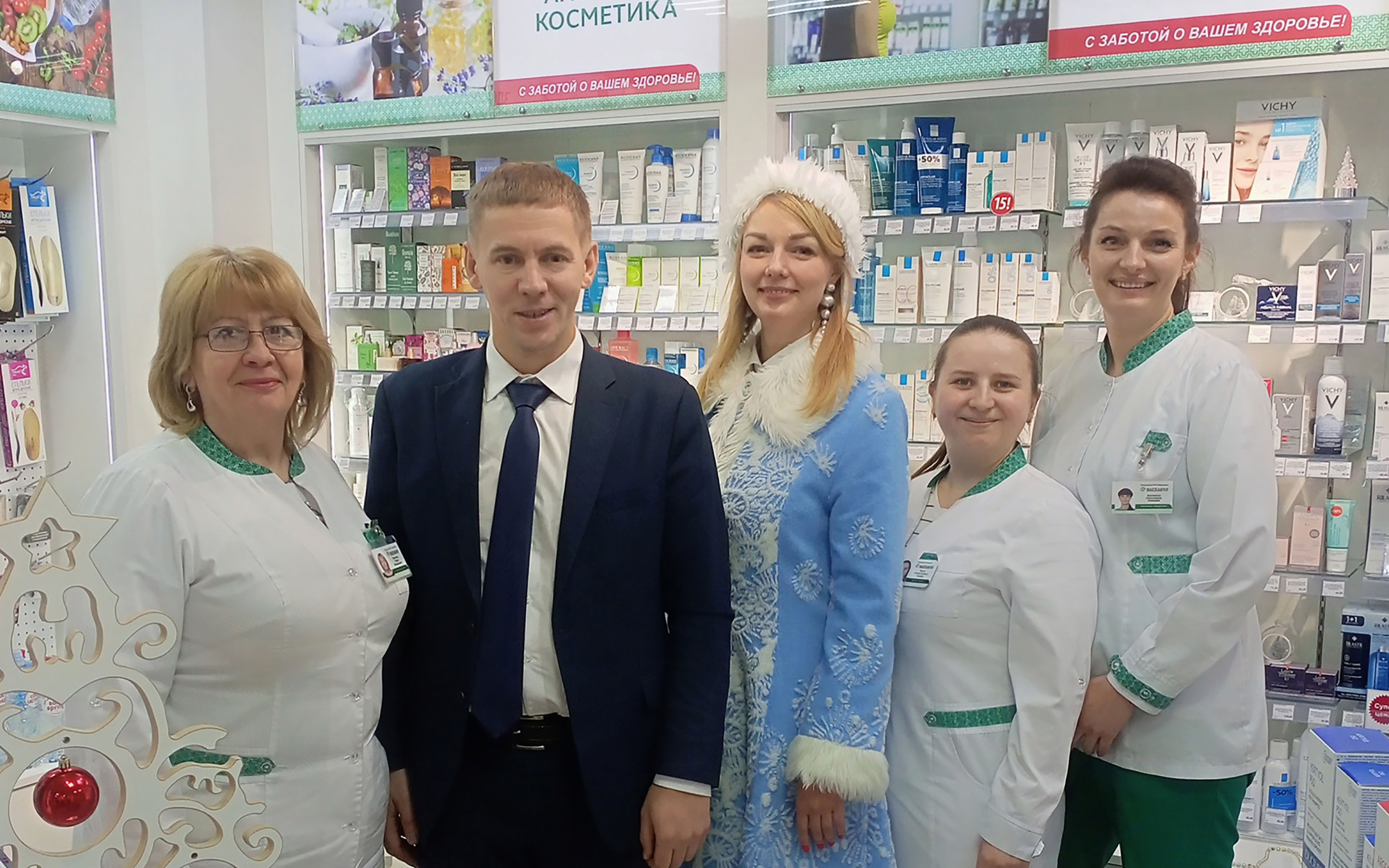 Накануне Рождественских и Новогодних праздников аптеки Гродненского РУП «Фармация» посетил праздничный десант в составе генерального директора Гродненского РУП «Фармация» Боровика Виталия Григорьевича и председателя первичной профсоюзной организации Житко Марии Александровны. Коллеги принимали искренние поздравления с наступающими праздниками, а также пожелания крепкого здоровья, успехов и вдохновения в работе!