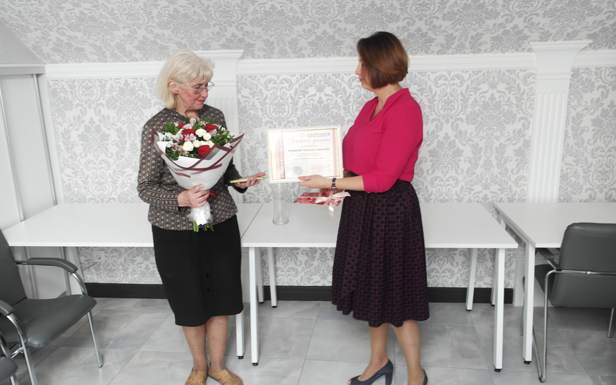 Душевные слова, цветы, теплые улыбки и немного слез на глазах… Последний день июля стал для сотрудников Гродненского РУП «Фармация» днем приятных воспоминаний и днем благодарности за многолетний, ответственный и по-настоящему бесценный труд Аделаиды Антоновны Богомазовой, заведующей канцелярией отдела кадров. Об этой доброй, скромной женщине и преданном предприятию сотруднике говорили в этот день руководители, коллеги, работники, из уст которых звучали очень трепетные, искренние и красноречивые слова: «человек-эпоха», «кладезь мудрости», «образец тактичности и внимательности»…Продолжать можно бесконечно. И не ошибиться, если сказать, что каждый сотрудник, приходящий на предприятие, одной из первых встречает Аду Антоновну (именно так, с большим уважением, ее называют). И именно ее светлая, дружелюбная улыбка, приветственные слова и нужные, грамотные советы ежедневно настраивали на позитивный лад работы и дарили хорошее настроение. Многие работники с неподдельной теплотой отмечали, что начало дня неизменно ассоциируется у них с Адой Антоновной, которая приходит на работу первой и уходит последней…